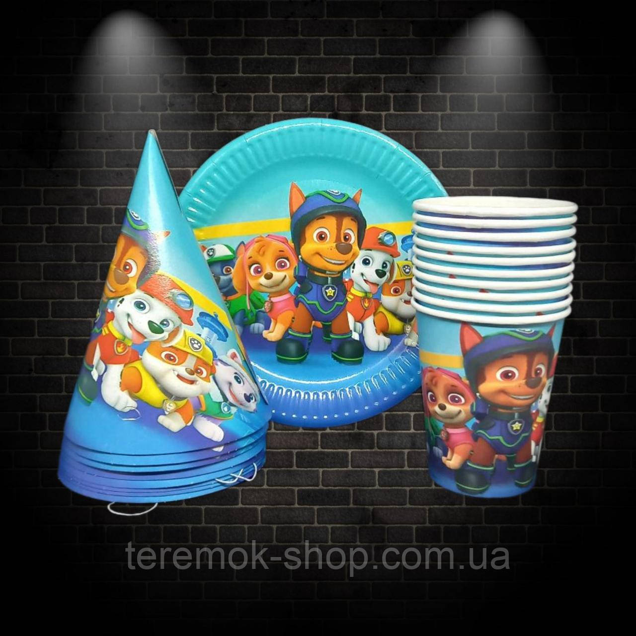 Набір для дня народження Щенячий Патруль, посуд дитячий одноразовий 10 тарілок 10 стаканчиків 10 ковпачків